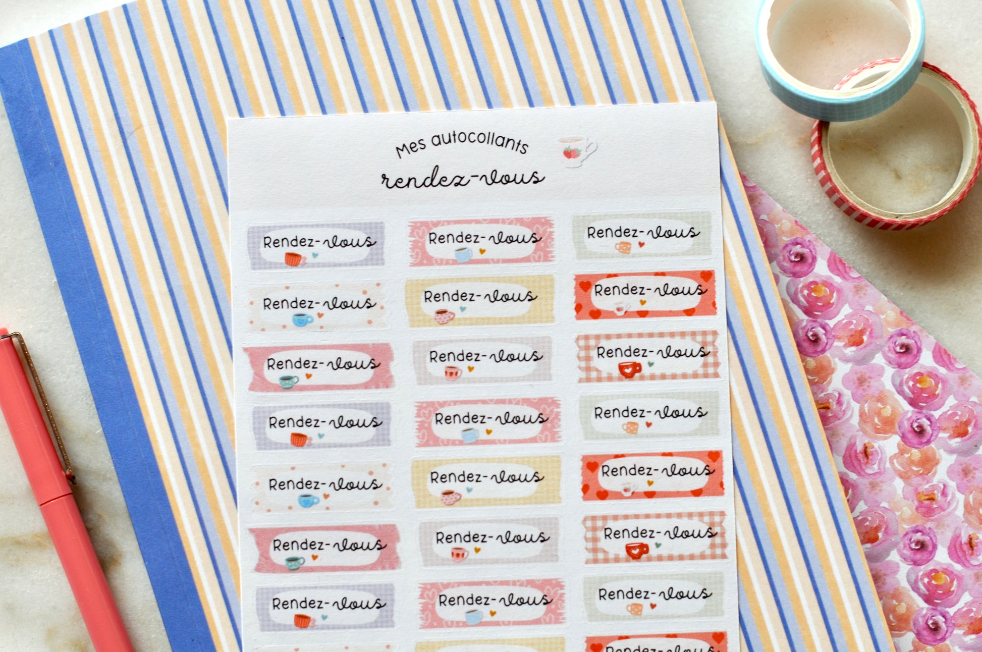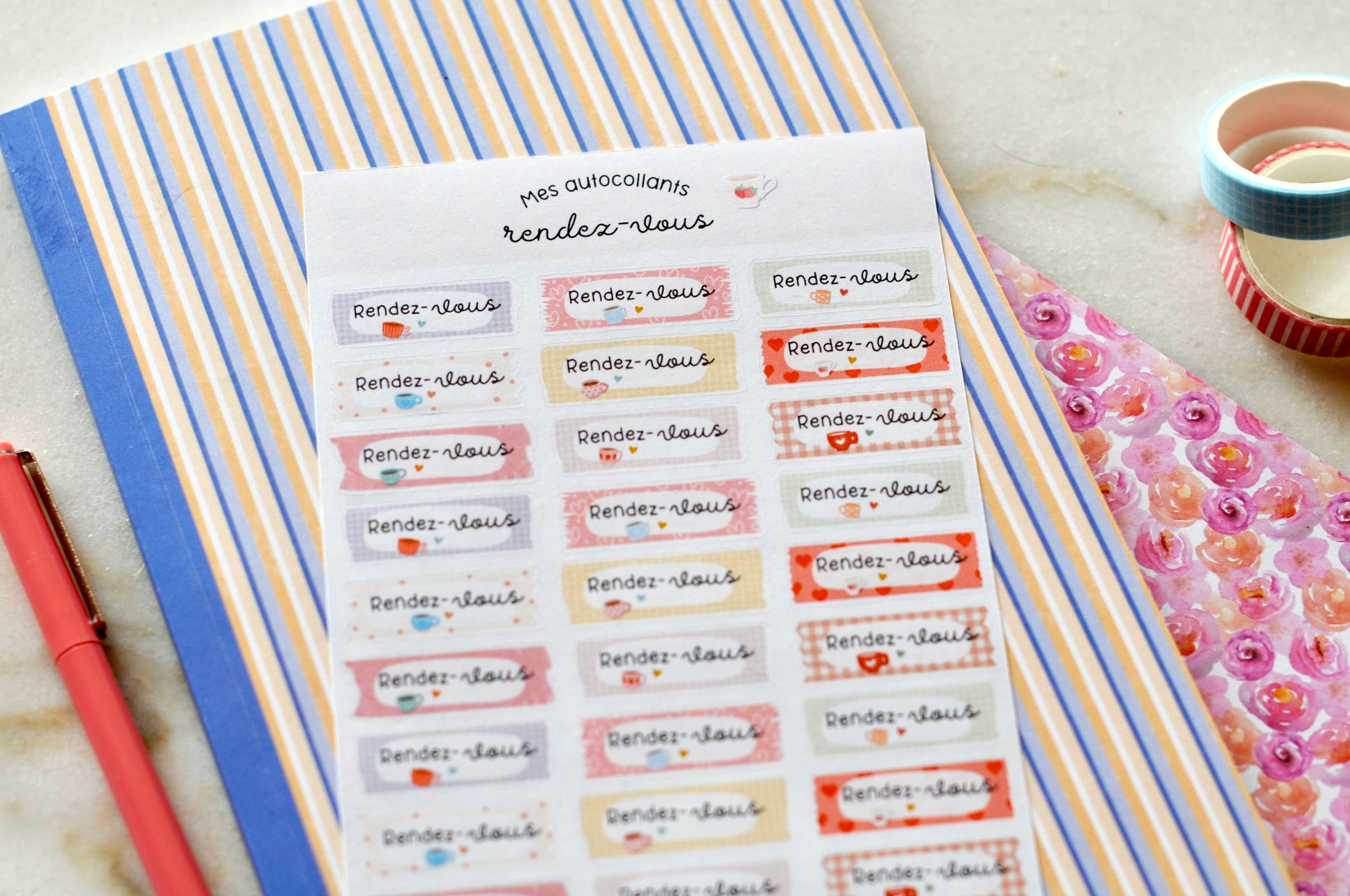 - Sur chaque feuille, vous y trouverez 23 autocollants avec des mots encourageants.